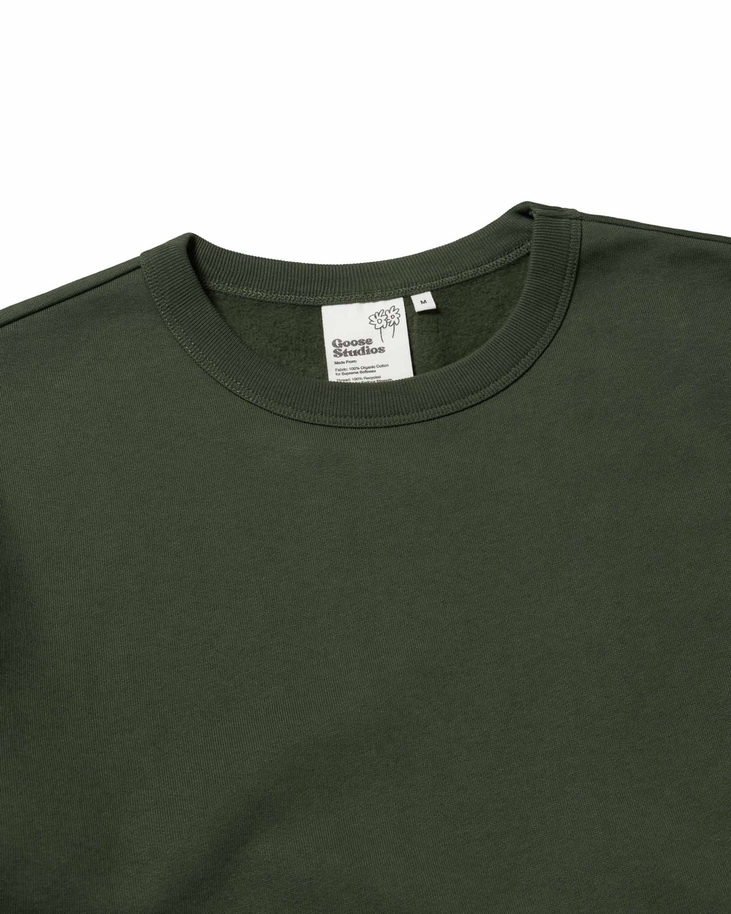 This sweatshirt is made from 100% organic cotton fabric, including the ribbing. This promotes farming practices that conserve soil, reduce artificial irrigation, increase bio-diversity and avoids all synthetic pesticides and fertilisers.